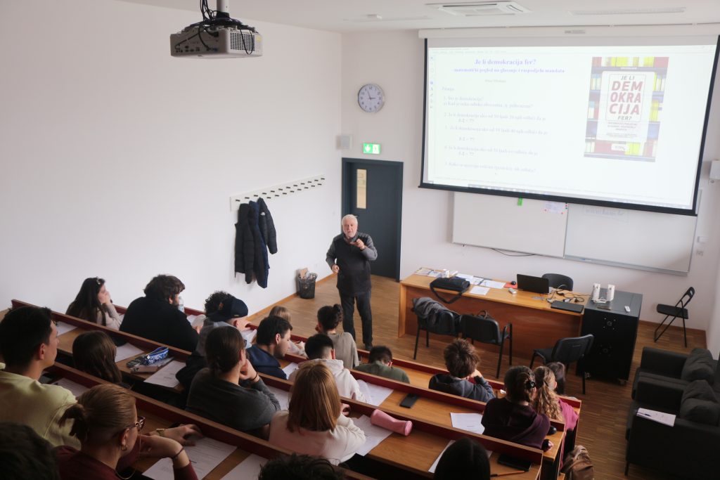 Sudionicima -. Nastavnicima i studenima je prezentirana knjiga ”Je li demokracija fer? – matematički pogled na glasanje i raspodjelu mandata”.