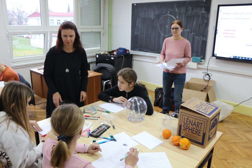 Kreirane datoteke radnih listića pokrivaju geometrijske sadržaje koji se nalaze u knjizi “Komparativna geometrija – poučavanje s uporabom pribora”. Sudionici su dobili “Scenarij za rad radionice”, radne listiće i pribor za rad: Lenartove sfere, sferne šestare, sferne kutomjere, flomatere za pisanje, čačkalice, gumice i  plastične noževe za rezanje te naranče.